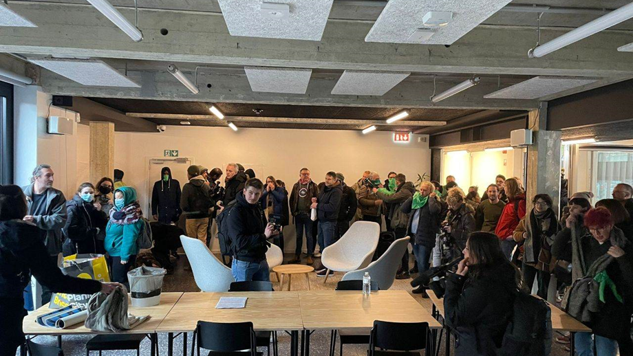 Une coalition de syndicalistes, de travailleur.euse.s, d’activistes écologistes et de citoyen.ne.s occupent les sièges des trois partis francophones MR, PS et Ecolo du gouvernement fédéral. Plus de 200 personnes participent à cette action de désobéissance civile. Elles reprochent à ces partis d’ignorer la réalité de l’appauvrissement et des difficultés concrètes auxquelles une partie conséquente de la population fait face. La coalition exige des mesures fortes et durables pour répondre à la double crise de l’énergie et du climat.