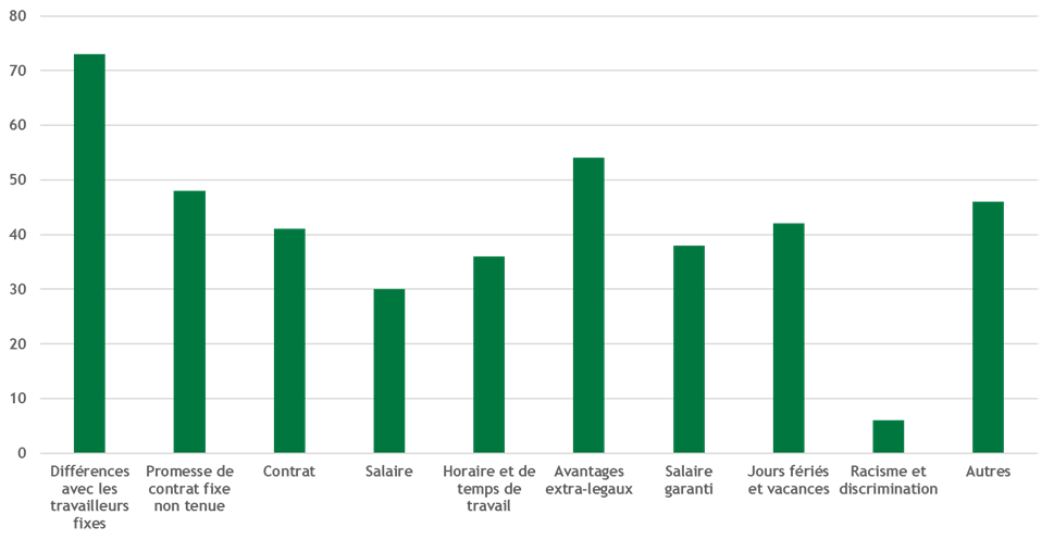 La revendication première est d’avoir un boulot plus stable. La majorité des intérimaires demande un CDI, mais on retrouve aussi des demandes de CDD ou simplement des contrats plus longs et réguliers. Comme intérimaire il est aussi difficile de faire respecter ses droits: surtout en ce qui concerne le droit à l'égalité avec les travailleurs permanents de la même entreprise, mais aussi pour les salaires, les contrats, le droit au salaire garanti en cas de maladie ou aux vacances. Il y a bien sûr des affiliés pour qui tout va bien mais on est loin du discours tout rose des agences d’intérim !