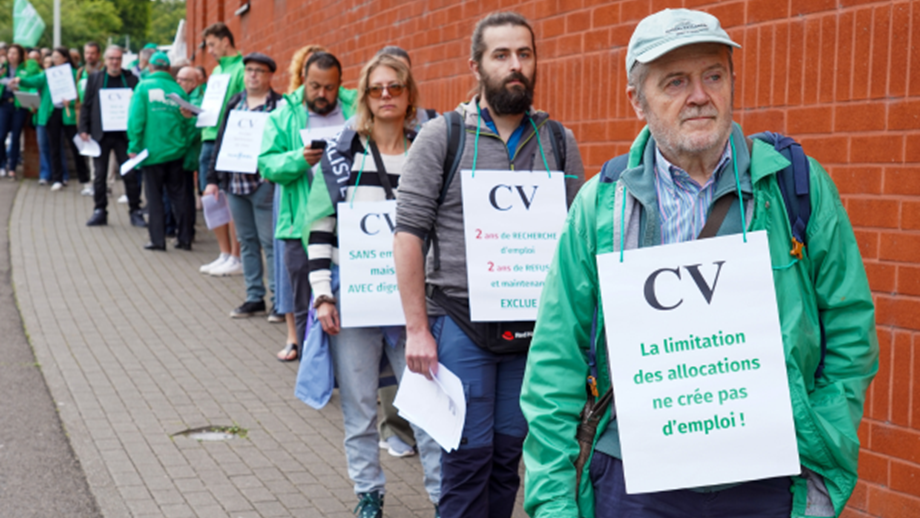 "Dans la logique du modèle français des "territoires zéro chômeur" de longue durée, nous souhaitons que les pouvoirs publics puissent proposer, en partenariat avec les entreprises et le monde associatif, au chercheur d’emploi, au bout de deux années de chômage, un travail dans le secteur public ou associatif ou le cas échéant dans le secteur privé, en tenant compte de son profil et de son parcours de formation. Les modalités de l’octroi de ce nouveau contrat de travail et de son échelle salariale seront déterminées par le gouvernement qui se concertera avec les acteurs et les secteurs concernés. En cas de refus de la part du demandeur d’emploi, celui-ci perdrait ses allocations de chômage. Au terme d’une période de chômage de 2 ans consécutifs, dont les indemnités auront été revues à la hausse (modèle scandinave), tout chercheur d’emploi se verrait automatiquement proposer un contrat de travail dans le secteur public ou associatif, en tenant compte de son profil et de son parcours de formation. Cet emploi s’inspirerait du modèle français "territoires zéro chômeur"." Cette promesse, c'était celle des Engagés avant les élections de juin 2024. À l'époque, le parti francophone souhaitait octroyer un droit à l’emploi après deux ans à chaque travailleur et travailleuse sans emploi, avant toute exclusion. Pourtant, un an plus tard, et alors que la loi programme va sanctionner plus durement encore celles et ceux qui peinent à trouver un job, rien n'arrive. C'est pourquoi, ce mardi 10 juin, la CNE, avec le soutien des centrales Transcom, Alimentation et Services, BIE et ACV-Puls, a organisé un jobday devant le cabinet du Ministre wallon de la Lutte contre la pauvreté.