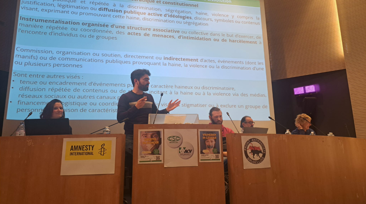 Jeudi 27 novembre, environ cent personnes ont participé à une soirée organisée par la CSC Bruxelles pour comprendre et débattre des risques liés à la Loi Quintin. Un projet qui permettrait au gouvernement de dissoudre certaines associations sans passer par un juge, et qui suscite beaucoup d’inquiétude dans le monde syndical, associatif et citoyen.