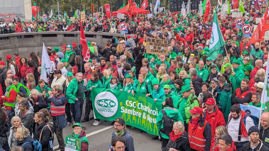 Une mobilisation historique le 14 octobre 2025 avec plus de 6000 carolos pour manifester à Bruxelles lors de la grève nationale.