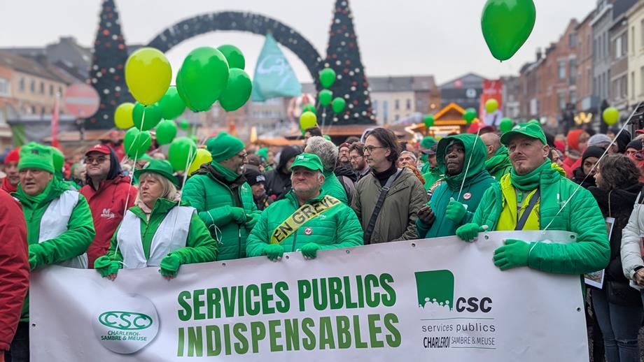 Enseignement, transports en commun, CPAS, AC, Intercommunales, Province de Hainaut, douaniers et inspecteur de l'aéroport de Charleroi, nos policiers, pompiers, agents de l'AVIQ, du FOREM, de l'ONEM, ... administrations communales, fédérales, régionales et de la Fédération Wallonie Bruxelles, ainsi que tous les collègues des secteurs privés qui soutiennent la grève d'aujourd'hui.