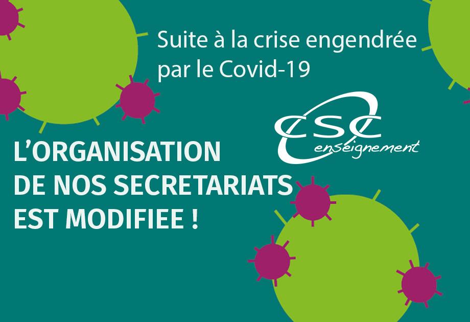 Suite à la crise engendrée par le Covid-19, l’organisation de nos secrétariats est modifiée.