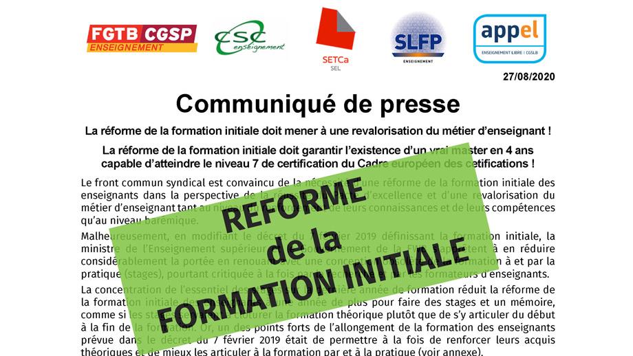 Communiqué de presse du 27/08/2020 : Réforme de la formation initiale des enseignants (PDF)