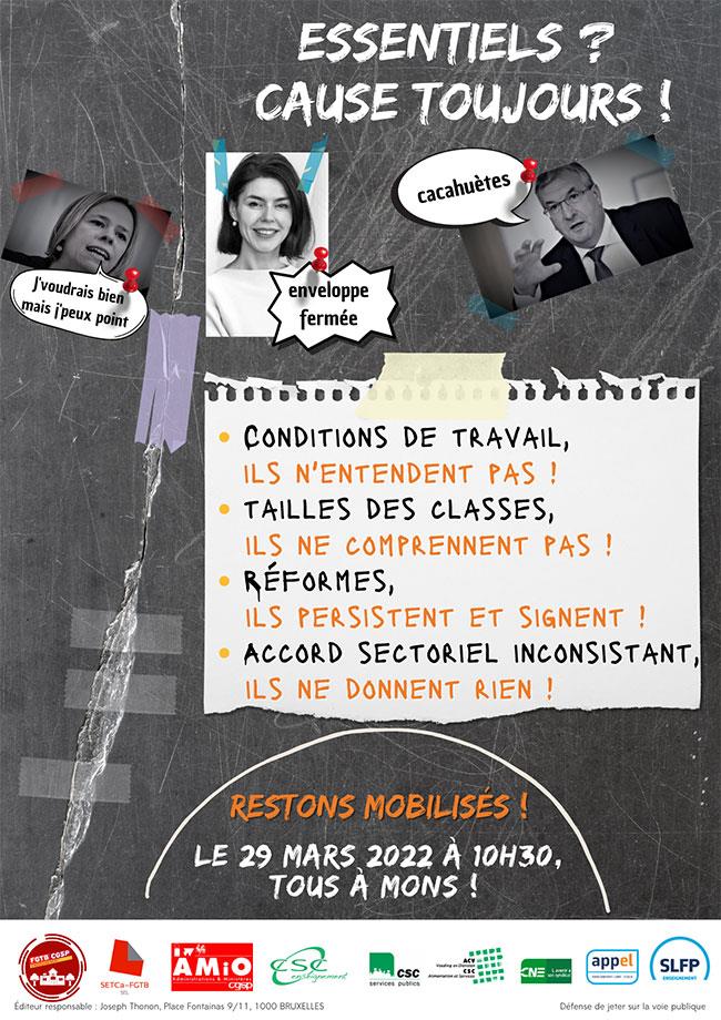 Le 29 mars, à Mons, nous rappellerons au Gouvernement que tous les membres du personnel restent mobilisés!