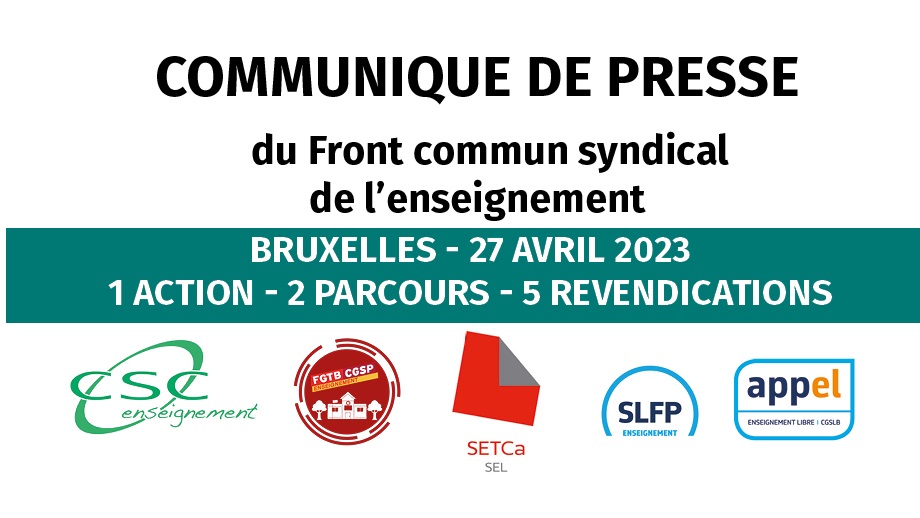 Ce 27 avril, une action mobilisera les personnels de l’enseignement dans les rues de Bruxelles. Elle concerne les 5 revendications portées depuis plus d’un an: la surcharge administrative, la revalorisation de l’enseignement qualifiant, les moyens d’encadrement, les moyens d'encadrement (la taille des classes), l'avenir des CPMS,l’évaluation des personnels. Elle prendra deux formes: