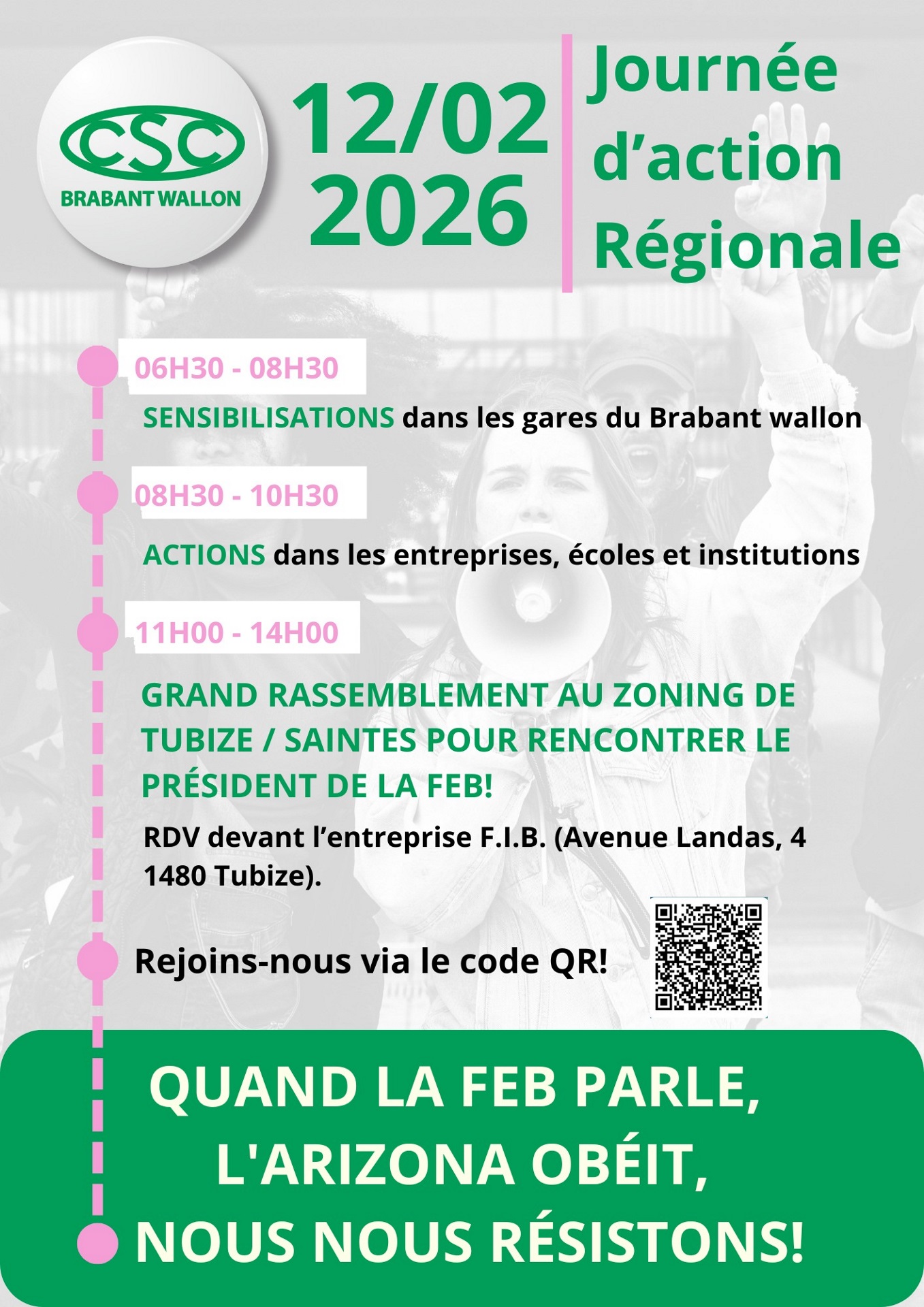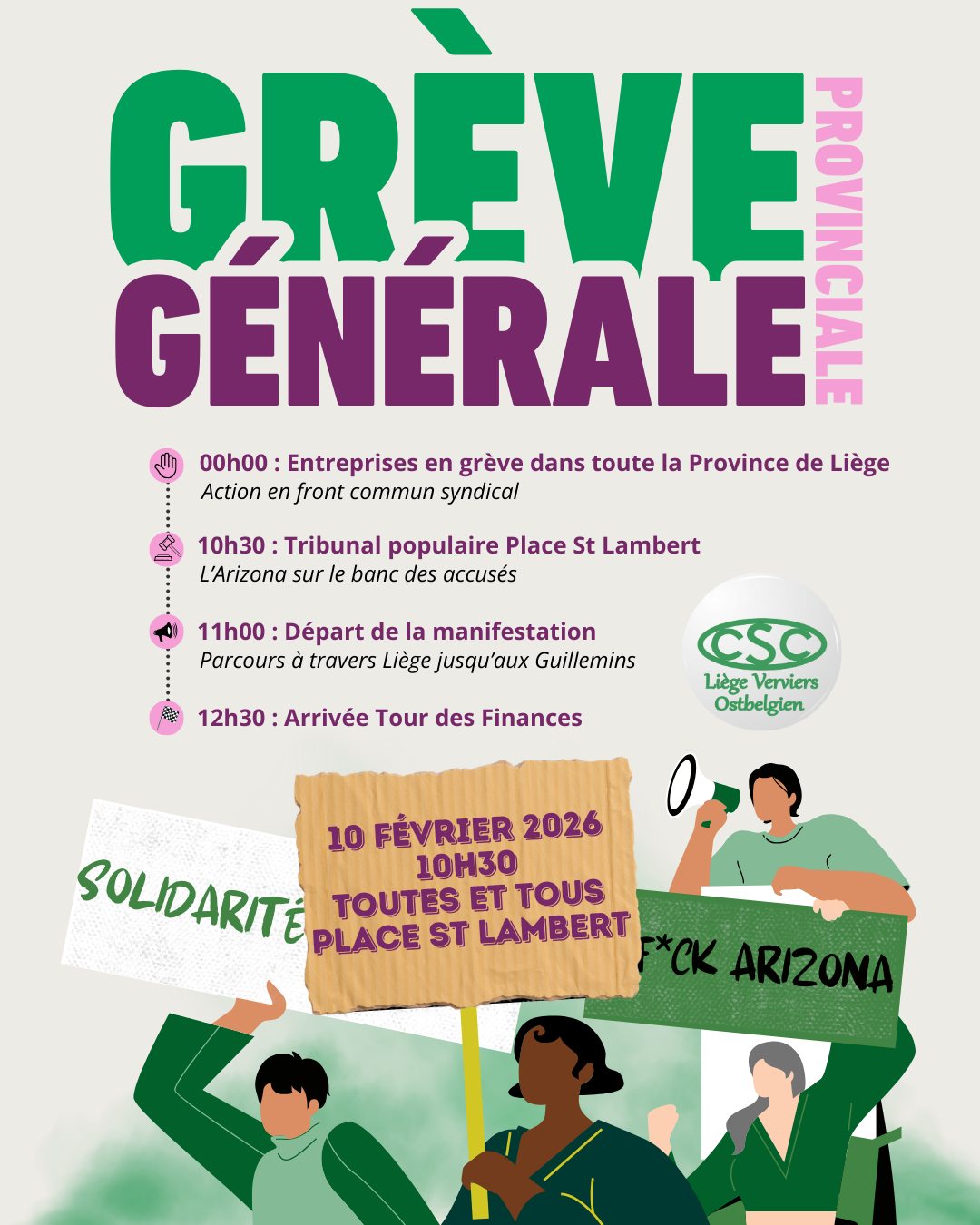 Face aux mesures antisociales du gouvernement De Wever, les travailleurs et les travailleuses, soutenu·e·s par la CSC-E, feront entendre leur voix à l'occasion de journée de grève et d'action provinciale organisées durant tout le mois de février 2026.