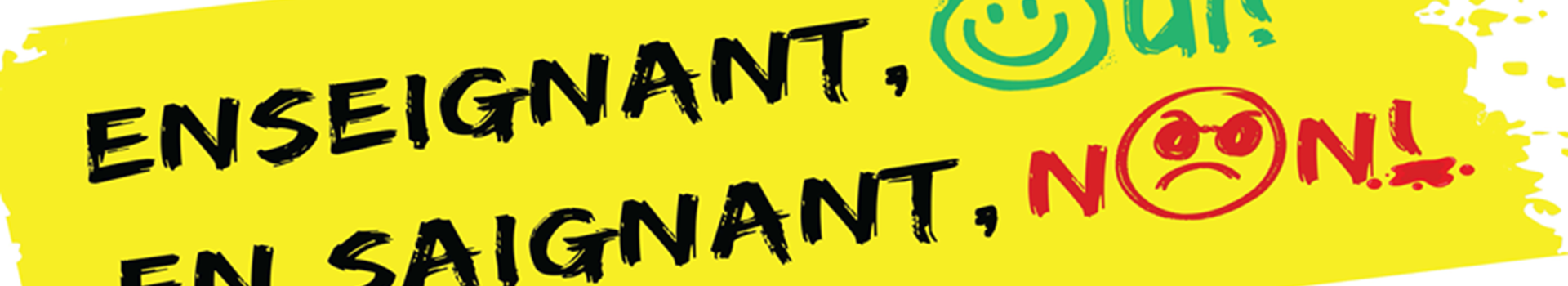 Action autocollant sous le slogan "Enseignant, OUI- En saignant, NON!"