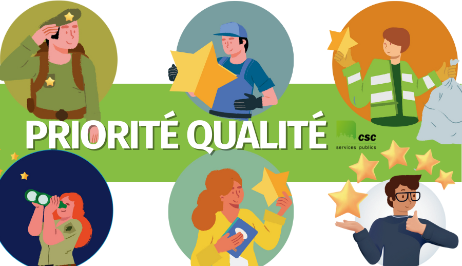 Le 20 mai, la CSC Services publics a lancé l'enquête « Priorité Qualité » auprès des travailleurs des services publics. Celle-ci visait à évaluer la satisfaction du personnel et les conséquences des mesures d'économie sur leur expérience professionnelle. 6 926 personnes (3 986 néerlandophones et 2 940 francophones) ont répondu à l'enquête. Les résultats montrent que 75 % des membres du personnel sont fiers de travailler dans le secteur public. En moyenne, ils attribuent 3,3 étoiles (sur 5) à leur emploi. Il faut toutefois remarquer que 51,5 % d'entre eux indiquent être à la recherche d'autres opportunités professionnelles et envisagent de changer d'emploi dans un délai d'un à deux ans. 70 % d'entre eux ont entre 25 et 45 ans.