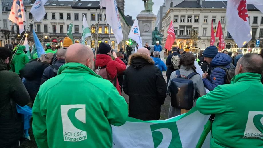 La CSC-Transcom était présente ce mercredi 3 décembre 2025 à la Place du Luxembourg, à Bruxelles, au pied du Parlement européen.