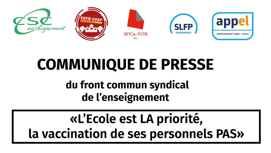 Communiqué de presse du front commun syndical de l'enseignement du 8 février 2021