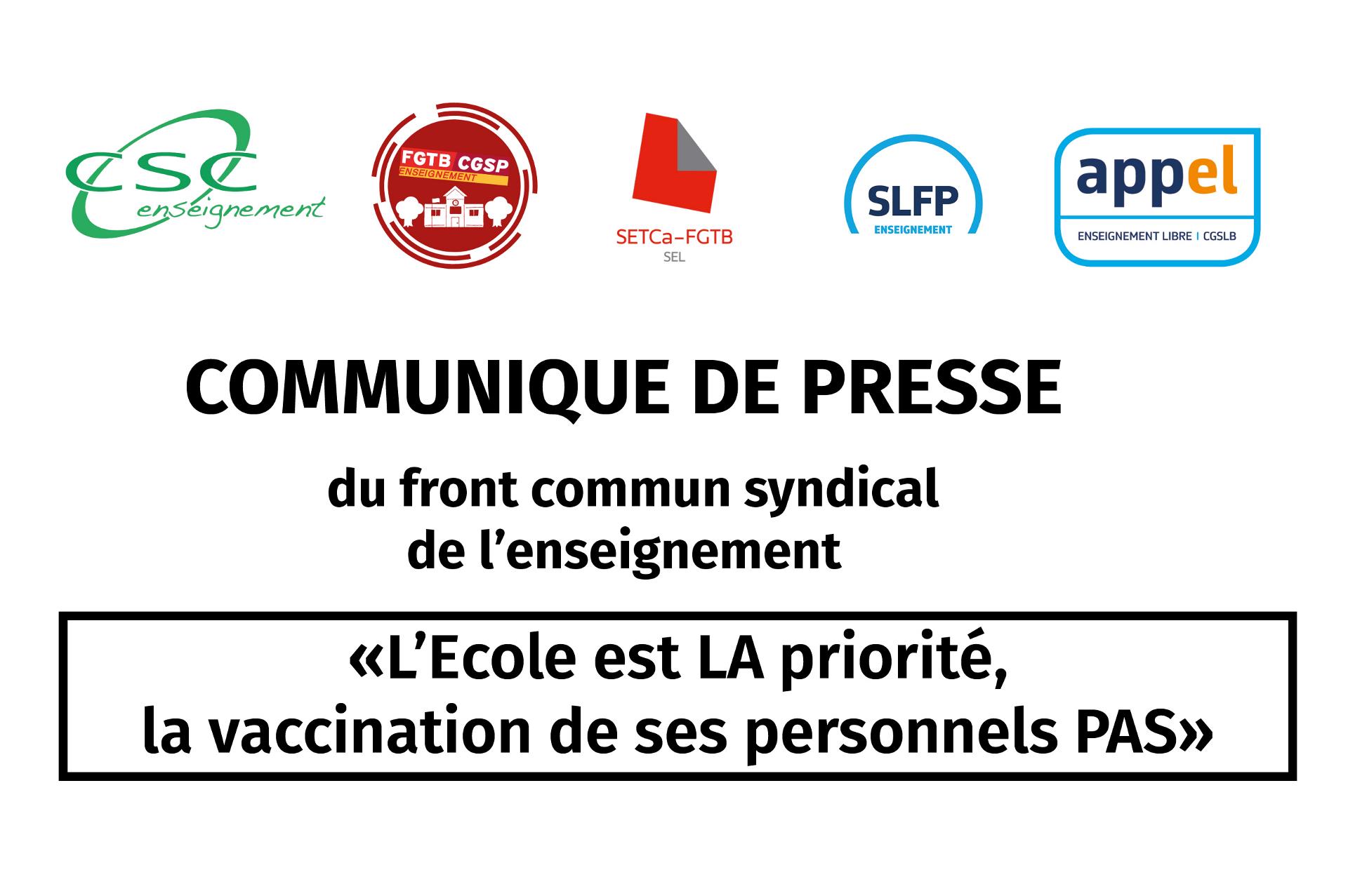 Le front commun syndical exige un plan clair de vaccination prioritaire pour les personnels de l’enseignement, seul moyen de retrouver l’école telle qu’elle doit être.
