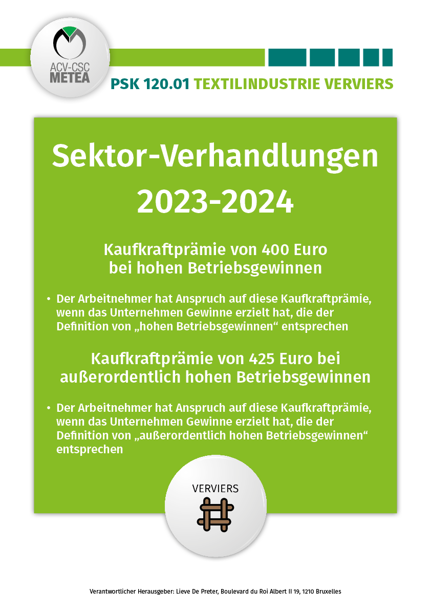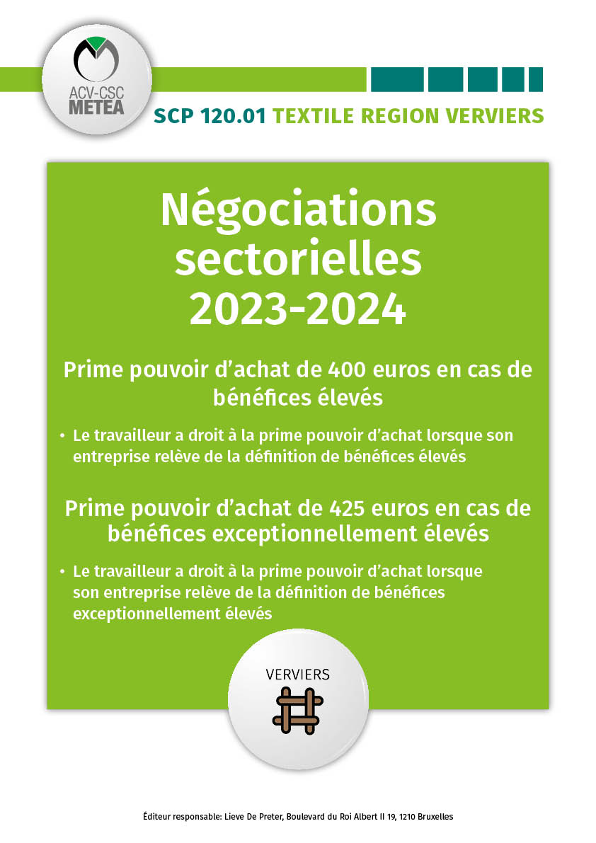 SCP 120.01 - Textile région Verviers: Des news concernant la prime pouvoir d'achat