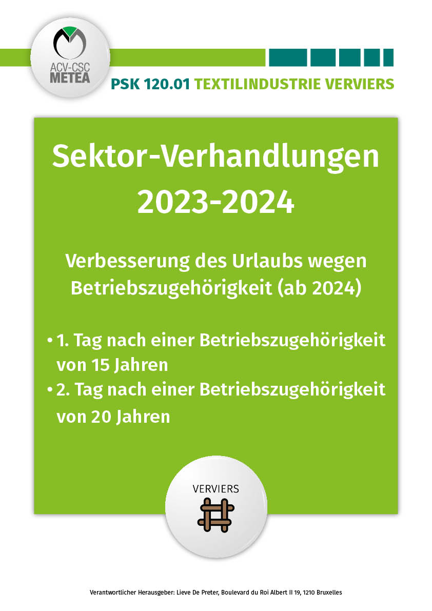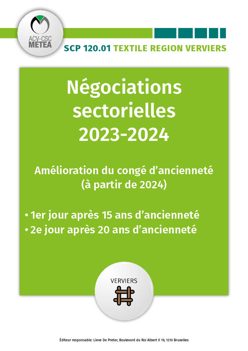 SCP 120.01 - Textile région Verviers: Des news concernant le congé d'anncienneté