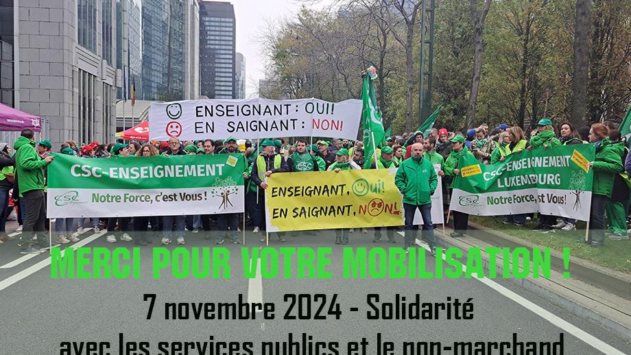 Cette mobilisation est donc une occasion pour les affiliés de la CSC Enseignement de rejoindre un mouvement plus large visant à améliorer les conditions de travail dans les secteurs publics et non marchands, et à défendre la qualité des services offerts à la population. Elle s’inscrit dans une continuité de plusieurs actions menées depuis deux ans.