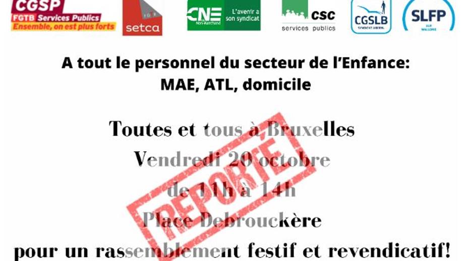Fête revendicative de l’Enfance de ce 20 octobre: report de l'évènement