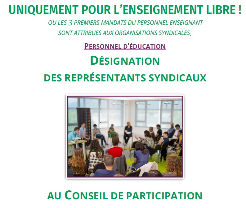Procédure de renouvellement des mandats syndicaux du personnel d'éducation dans l'enseignement libre.